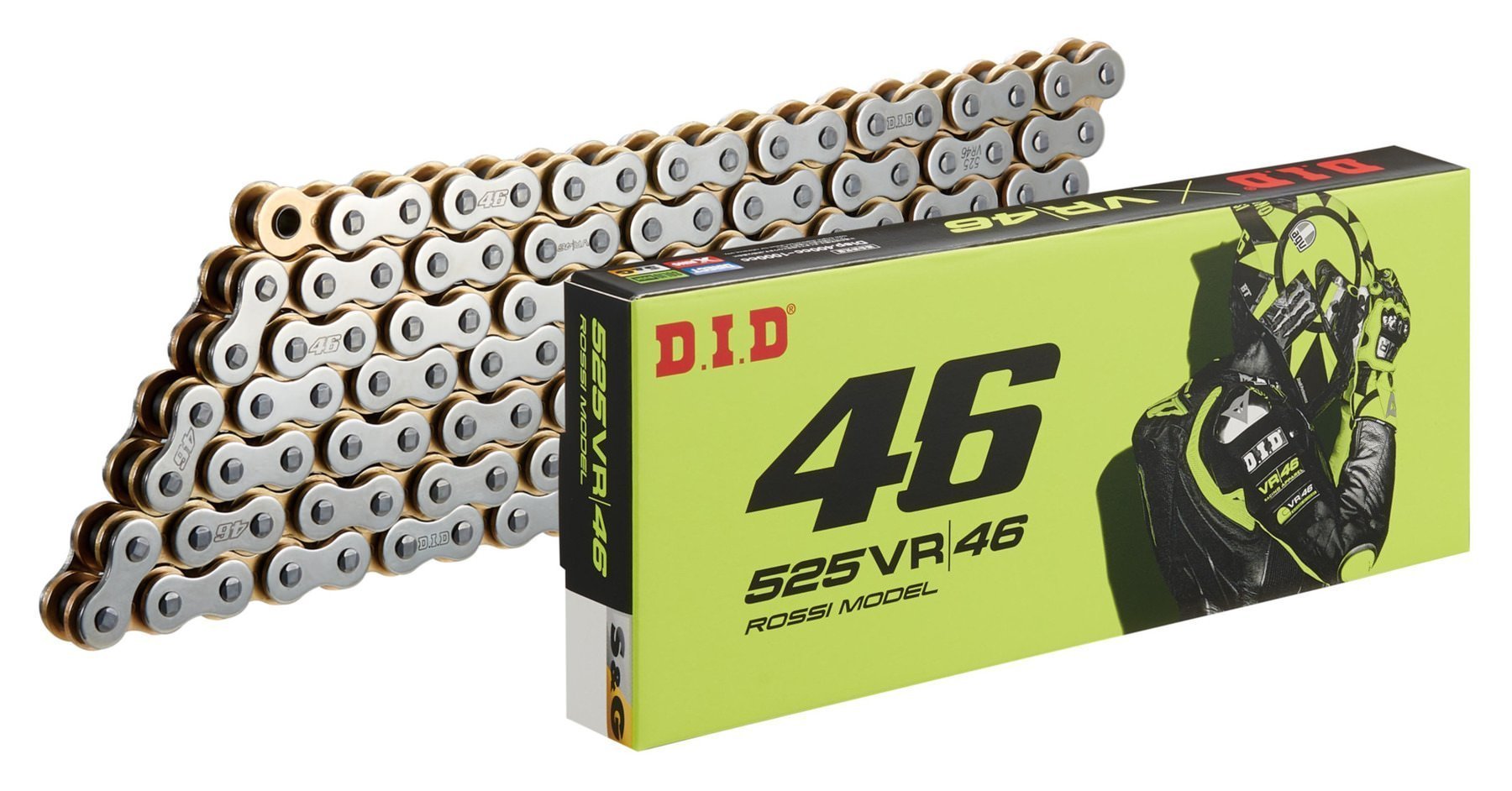 DID 520 VR46 Valentino Rossi kæde X ring guld med sølv link og VR46 logo