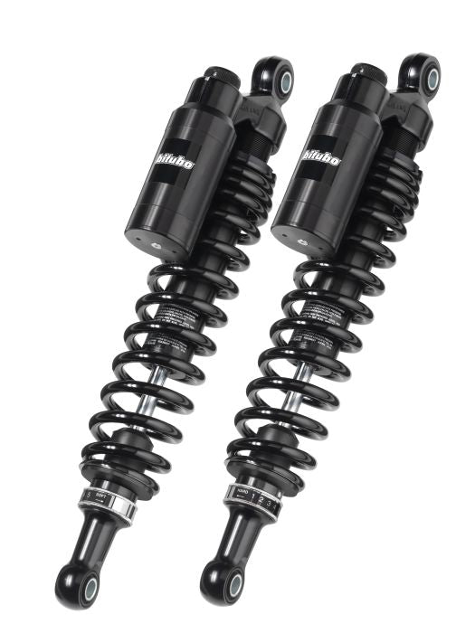 REAR TWIN Shocks - Length 361mm (STD +10mm) - Piggyback tank - ADJ:Manual spring preload, rebound, compression - DARK EDITION